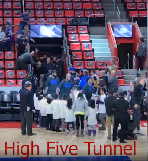 与NBA球员在入场处互动:
