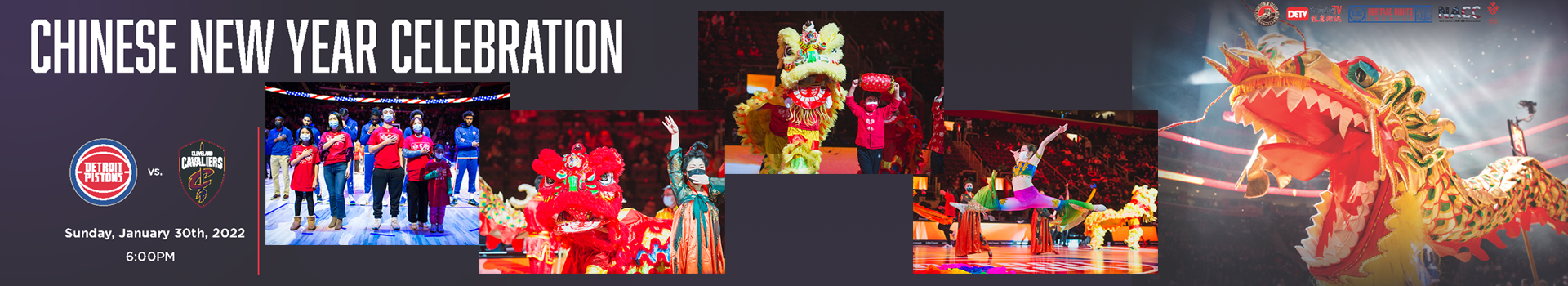 2022年1月30日,由底特律活塞队、底特律市政府、龙鹰卫视、北美华人联盟密西根(NACC)和底特律中国人协会(CAGD)共同举办的 “NBA活塞队欢乐春节中国之夜” 将在LITTLE CAESARS ARENA(小凯撒球馆)举行。届时活塞队对阵骑士队。