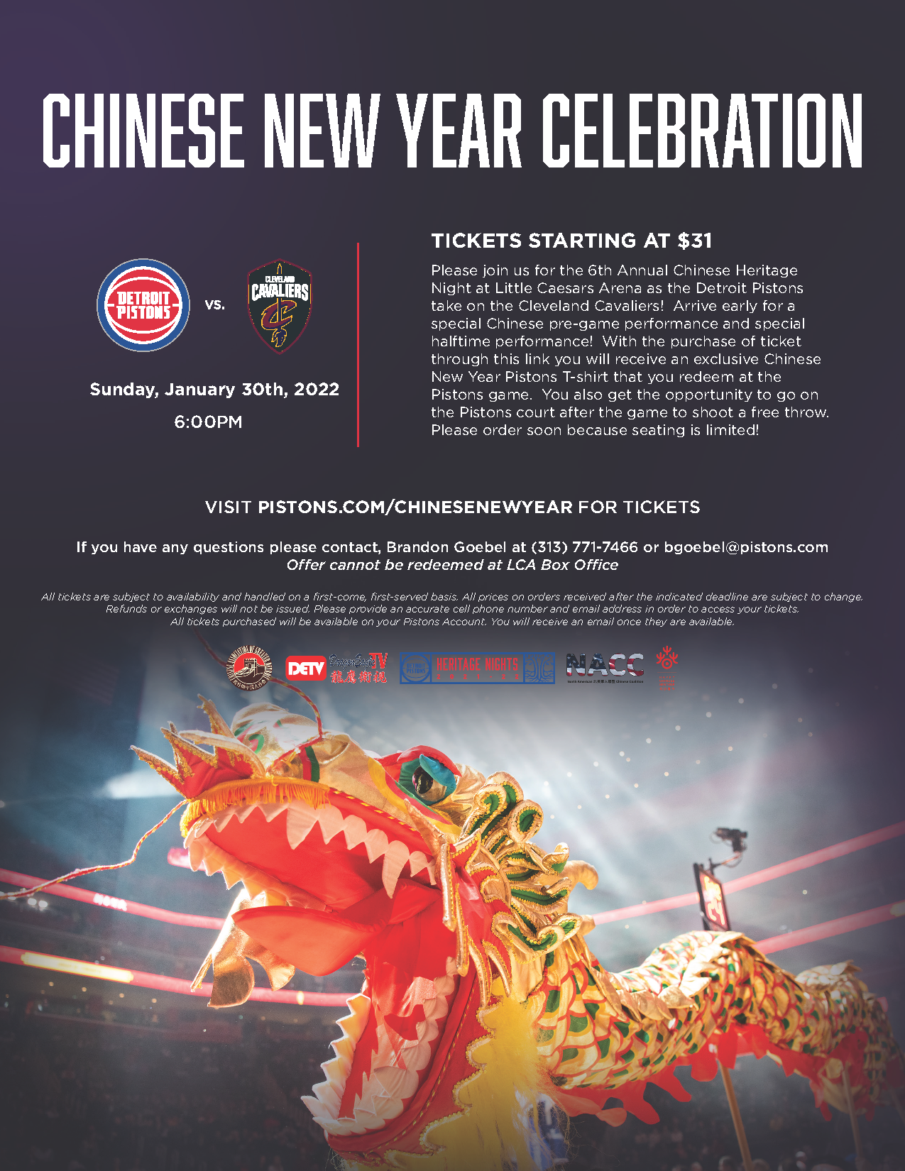 FOR TICKETS 购票链接:PISTONS.COM/CHINESENEWYEAR