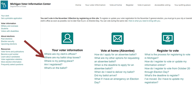 如果您已在您的居住地登记投票,则必须在指定的投票地点投票。请浏览michigan.gov/vote,并点击 “我的投票站在哪里?“