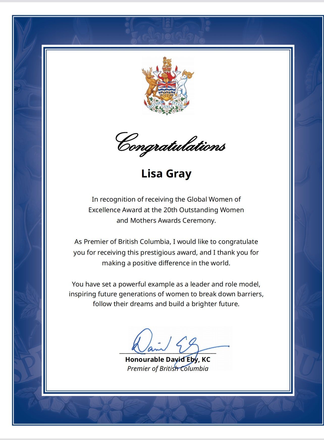 Lisa has received following awards: