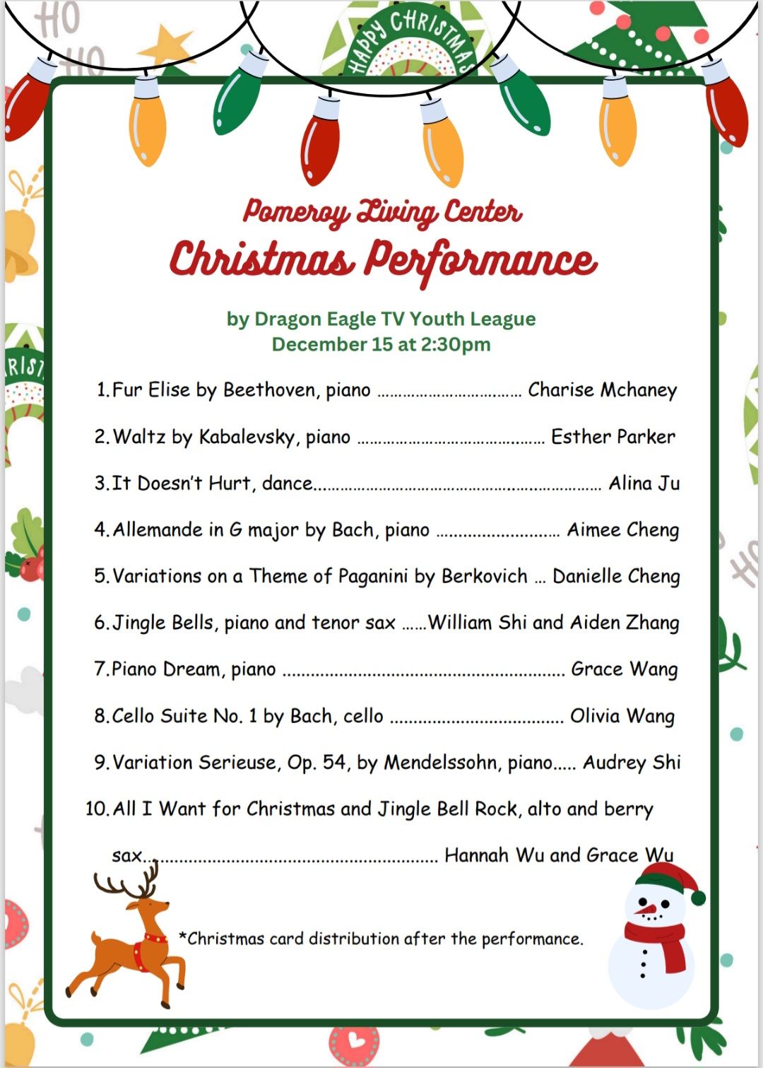 The event was a great reminder of how something as simple as music and a kind gesture can brighten someone's day. It felt amazing to see the seniors so happy, and the performance and cards made their holiday season even more special.