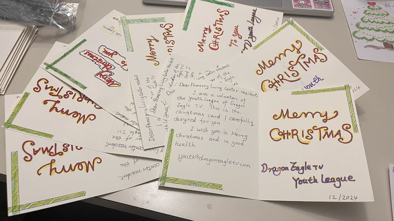After the performance, the youth league members had one more surprise for the seniors. They had made personalized Christmas cards, decorated with festive drawings and little messages. They delivered the cards to the seniors, wishing them a Merry Christmas and a Happy New Year. It was really touching to see how happy the seniors were as they received their cards.