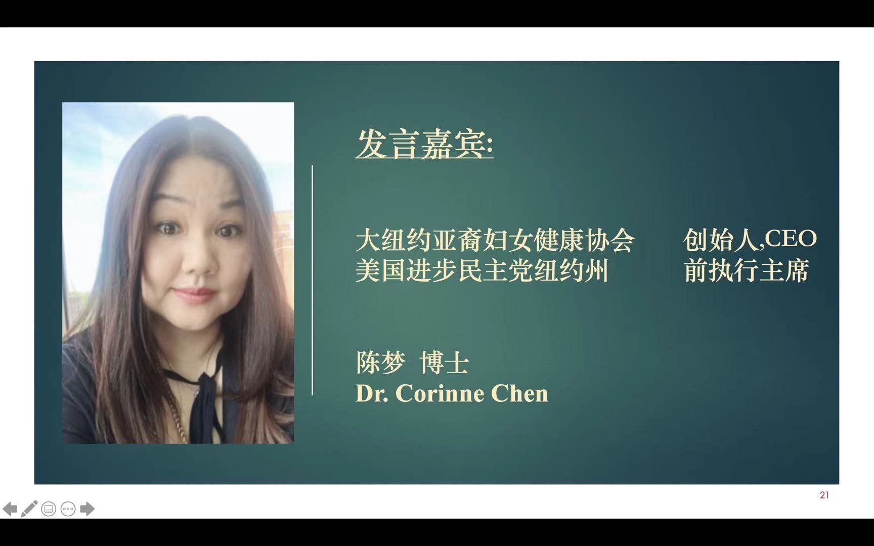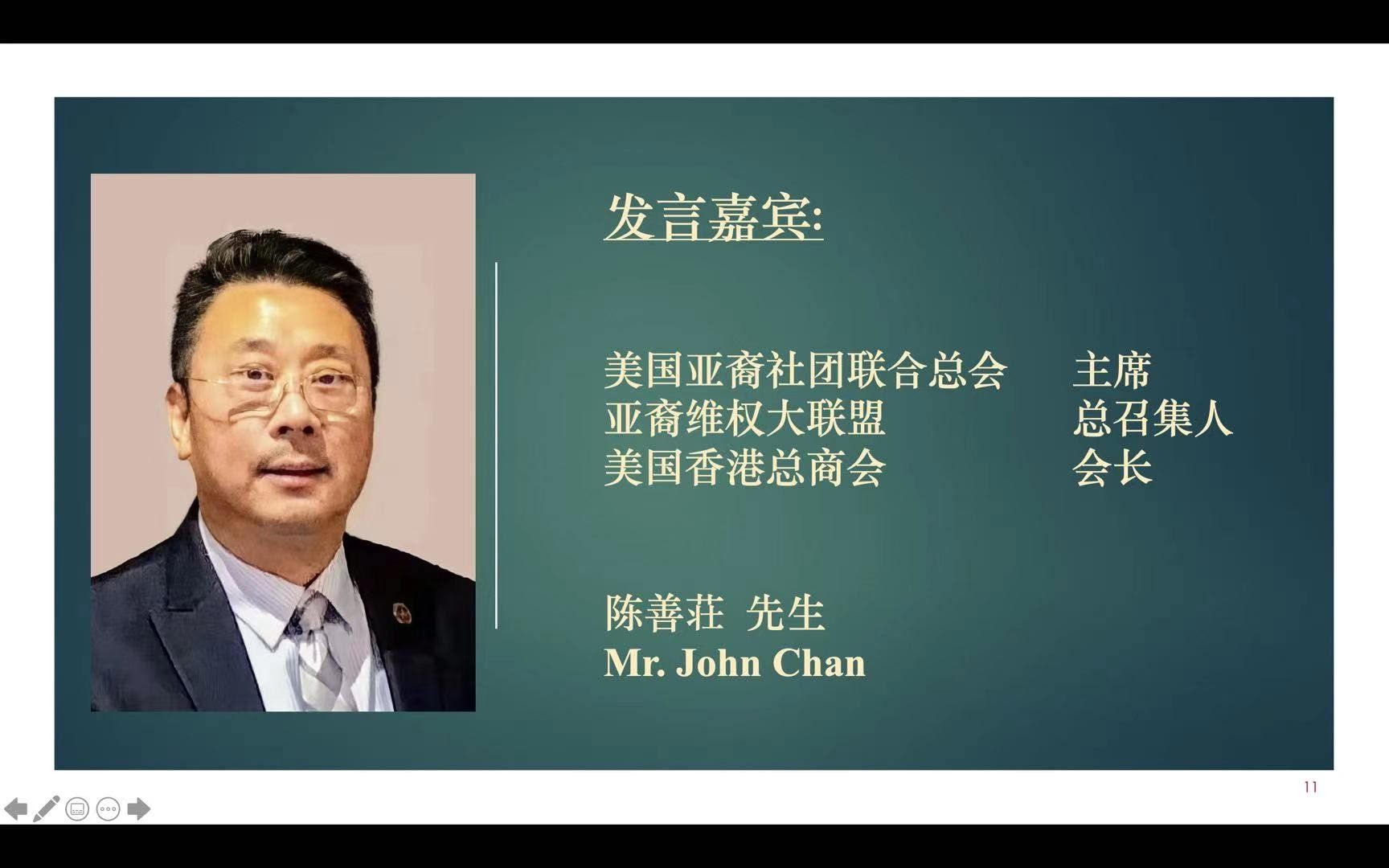 美国联邦众议员孟昭文女士作为特邀嘉宾出席会议并发表讲话,她表示,在近段时间全美各地针对华裔、亚裔的仇恨事件显著增加,她已经连续出席了数次反仇恨亚裔活动。