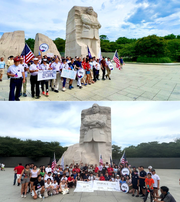 2024 年 6 月 30 日,正值盛夏的华盛顿特区,多云间晴,炎热逼人,但是来自美国 34 个州和大华府本地将近 300 位华人同胞,意气风发,神采飞扬,高举着美国国旗和美国华人联盟 United Chinese Americans (UCA)的大旗,举行了首次华人组织的大型民权步行活动,纪念《1964 民权法》生效 60 周年。