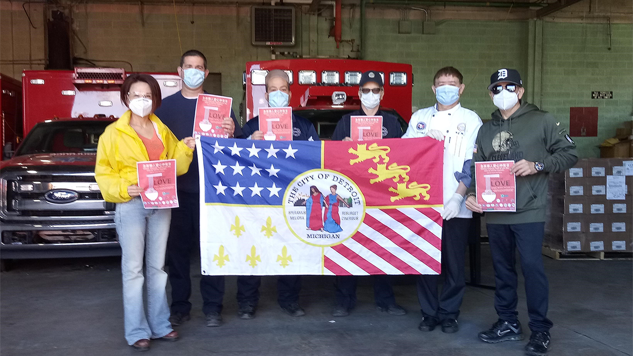 密歇根州底特律-2020年5月12日,星期二作为“亚裔美国人遗产月”的一部分,多家中餐馆和社区组织参与了“爱的食物”活动。安娜堡(Yan Arbor)的Ypbor Yan的第一架飞机是交付给东部市场设备部的消防员的。